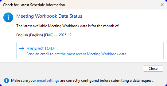The Check for Latest Schedule Information feature helps you find out if newer Meeting Workbook data is available.