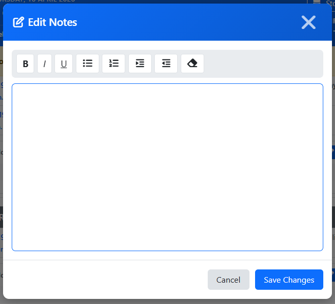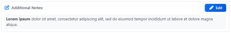 After saving, your formatted notes appear in a shaded display area beneath the Edit button. You can reopen the editor at any time—your existing notes will load automatically for editing.
