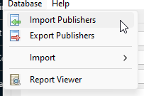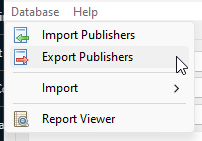 The Export Publishers menu item allows you to export a list of all the publishers' names into a simple XML document.