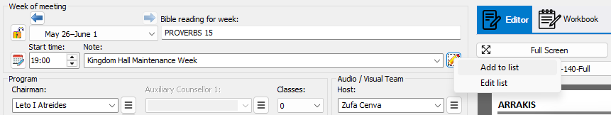Opens a window to modify videoconferencing details for the week. - 🏛️ Edit Bethel Speaker Service Talk Info